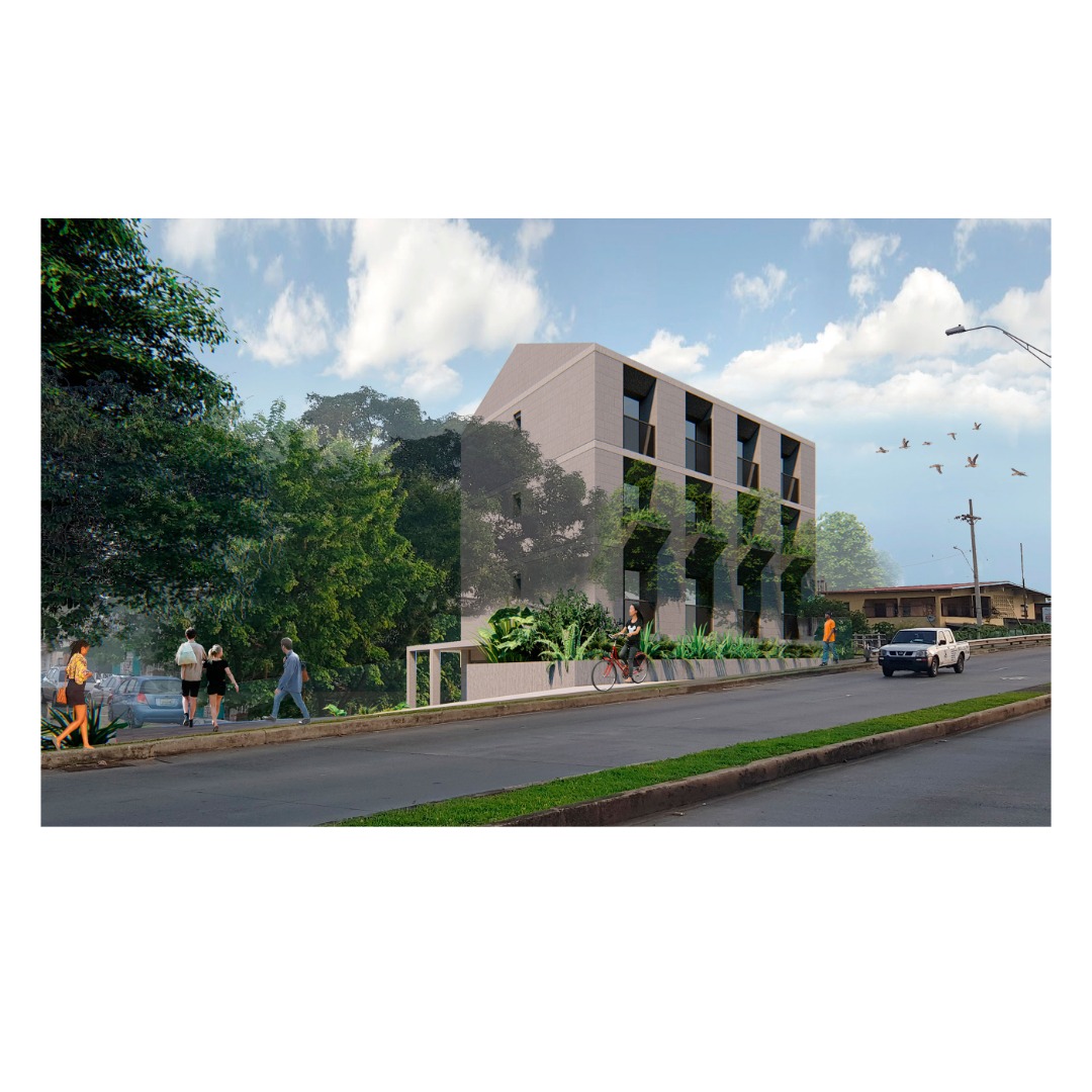 Este edificio en el barrio de Panamá Viejo se compone de 8 espacios de 55 m2 que pueden ser ocupados de diferentes maneras dependiendo del inquilino. Desarrollar un concepto que logre buena ventilación, iluminación y funcionabilidad para cada uno de los diferentes usos es la premisa de diseño.