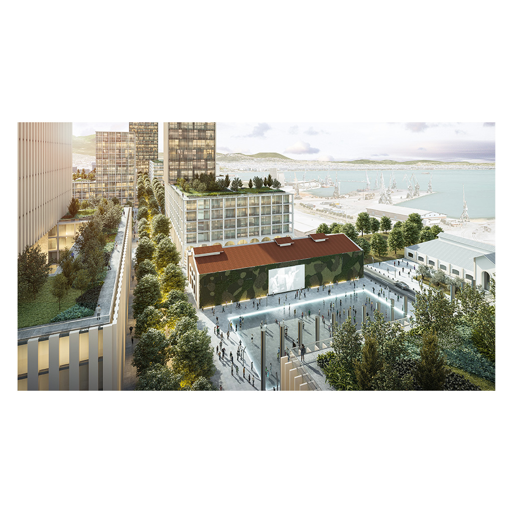 La columna vertebral de la propuesta es el Eje Verde que conecta los edificios emblemáticos de Benis Tannery Park y el Portal Cultural a través de un gran parque lineal / calle peatonal. Este eje principal se bifurca en un eje secundario que conecta los parques con los patios de los edificios en una escala íntima, una condición que es una característica que queríamos mantener para poder preservar el espíritu y la esencia de la ciudad.