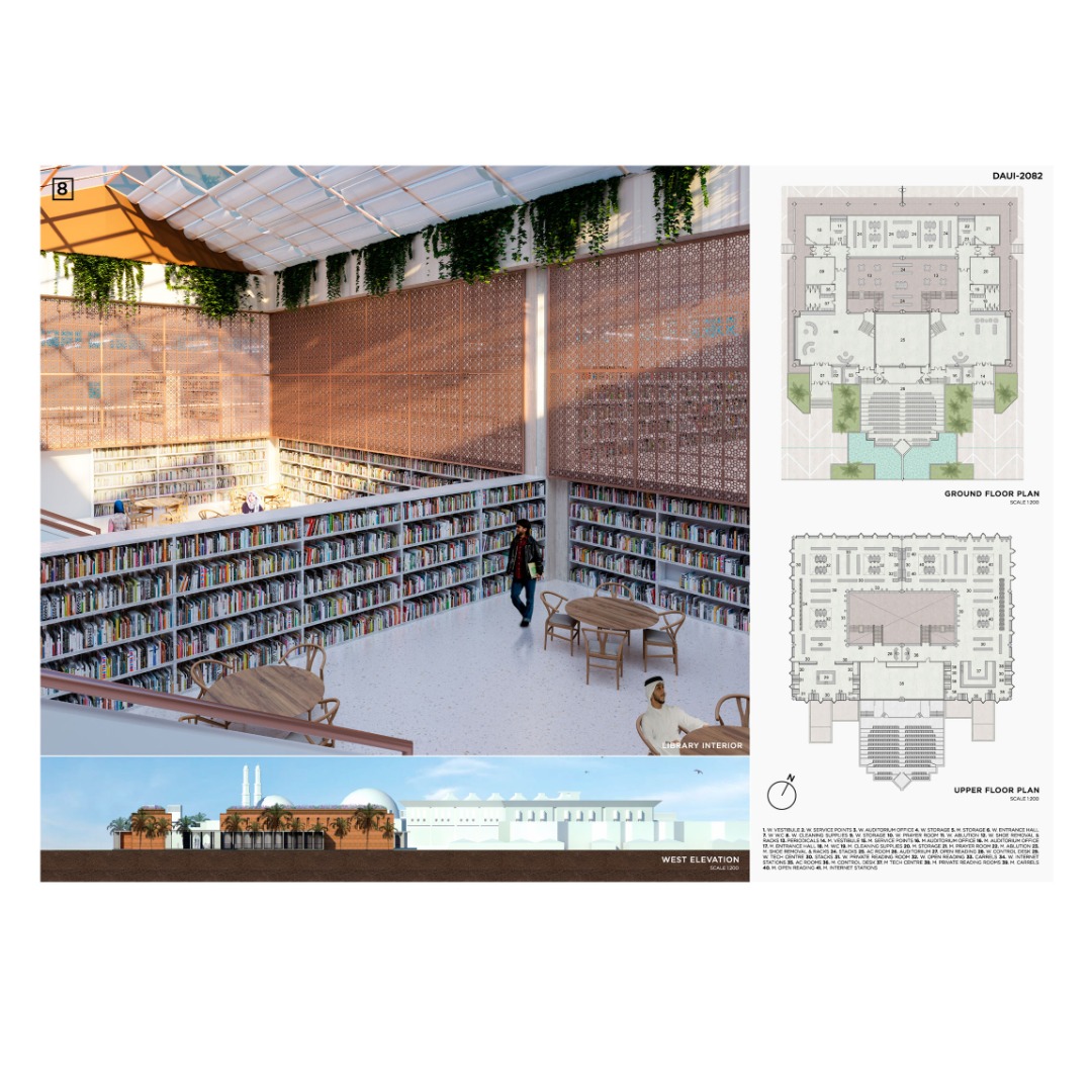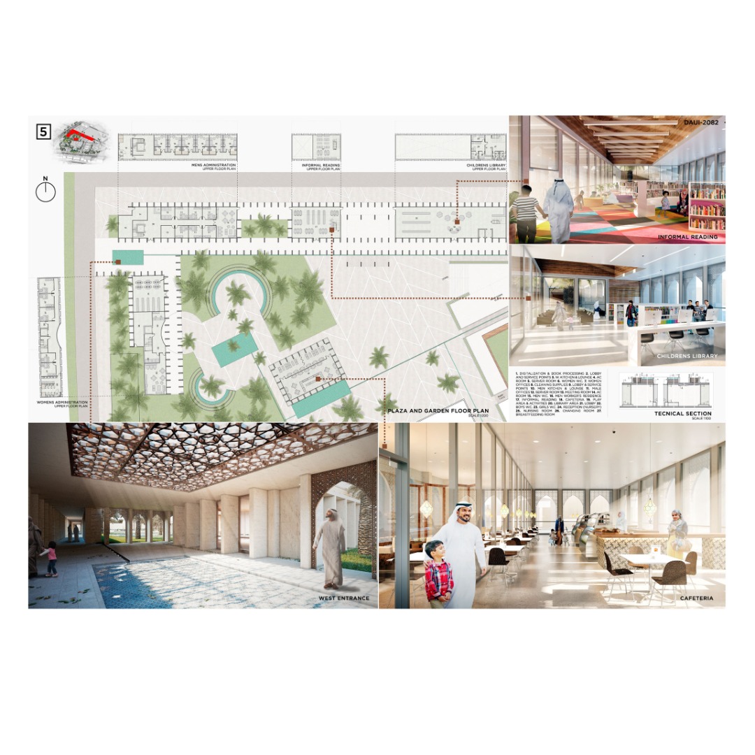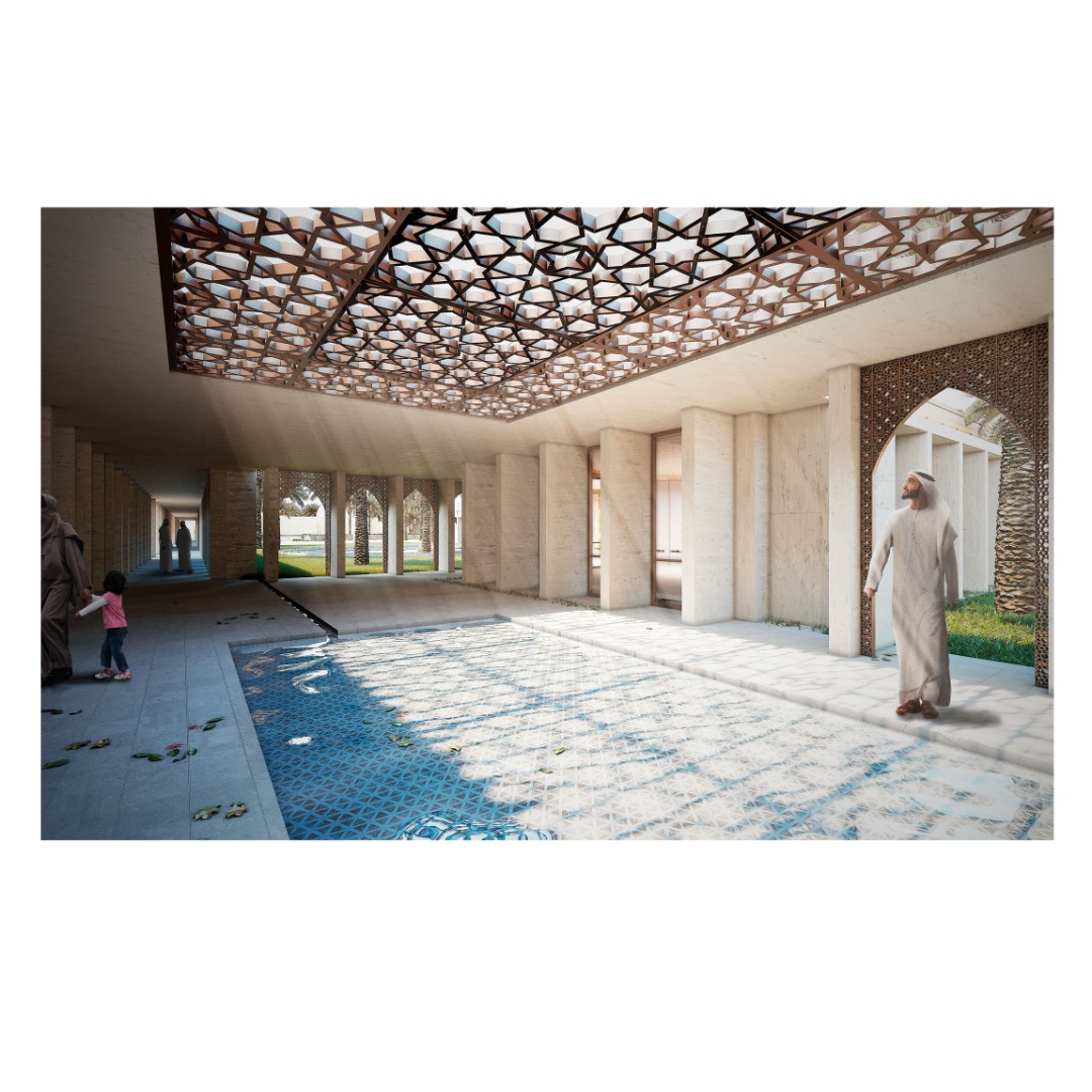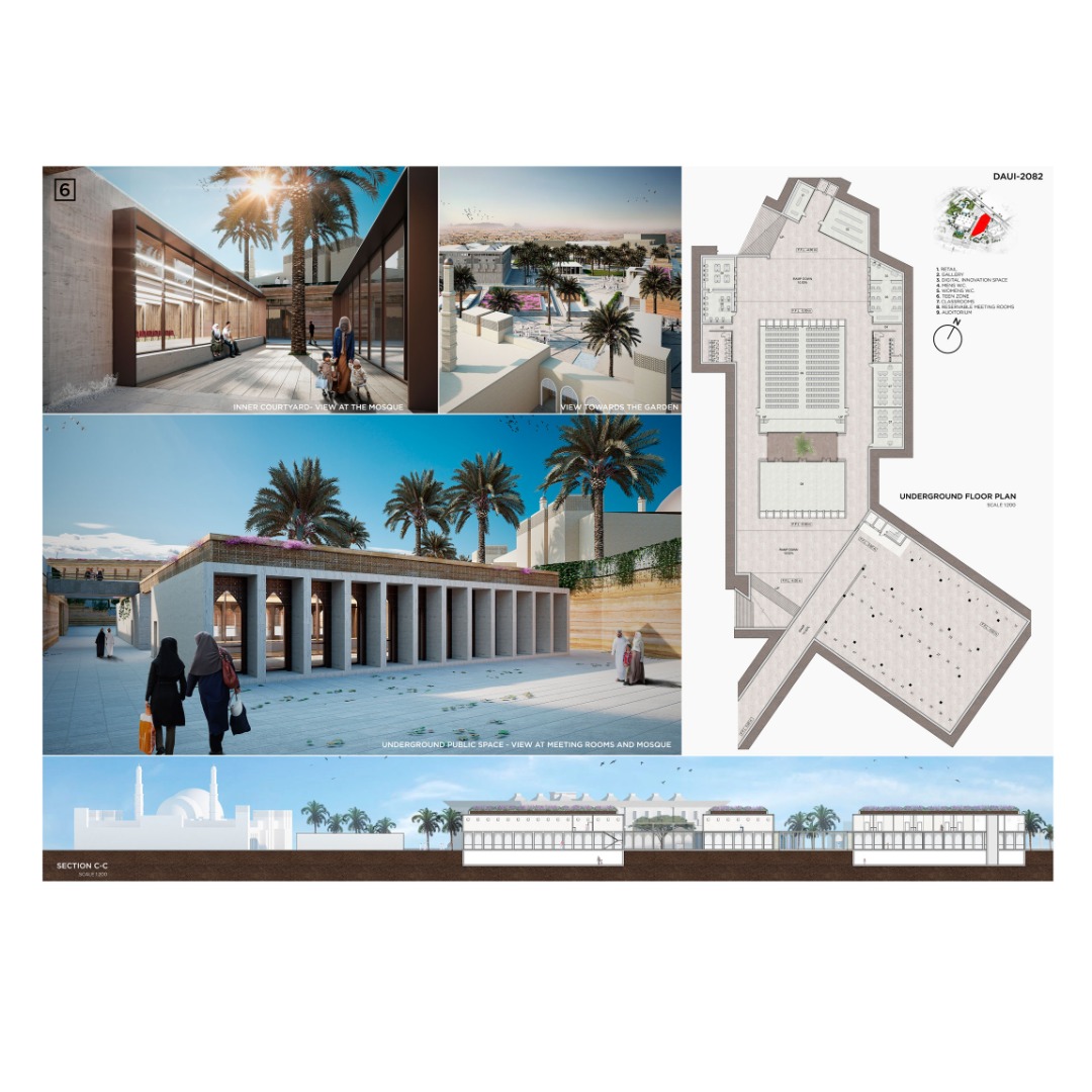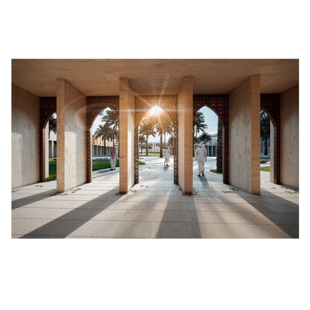 La idea de hacer estos edificios a manera de conexión y otros bajo el nivel de tierra tiene como único fin no robar protagonismo a la biblioteca y mezquita existente. De esta manera, la intervención plantea realzar y mejorar el espacio más que cambiarlo radicalmente.